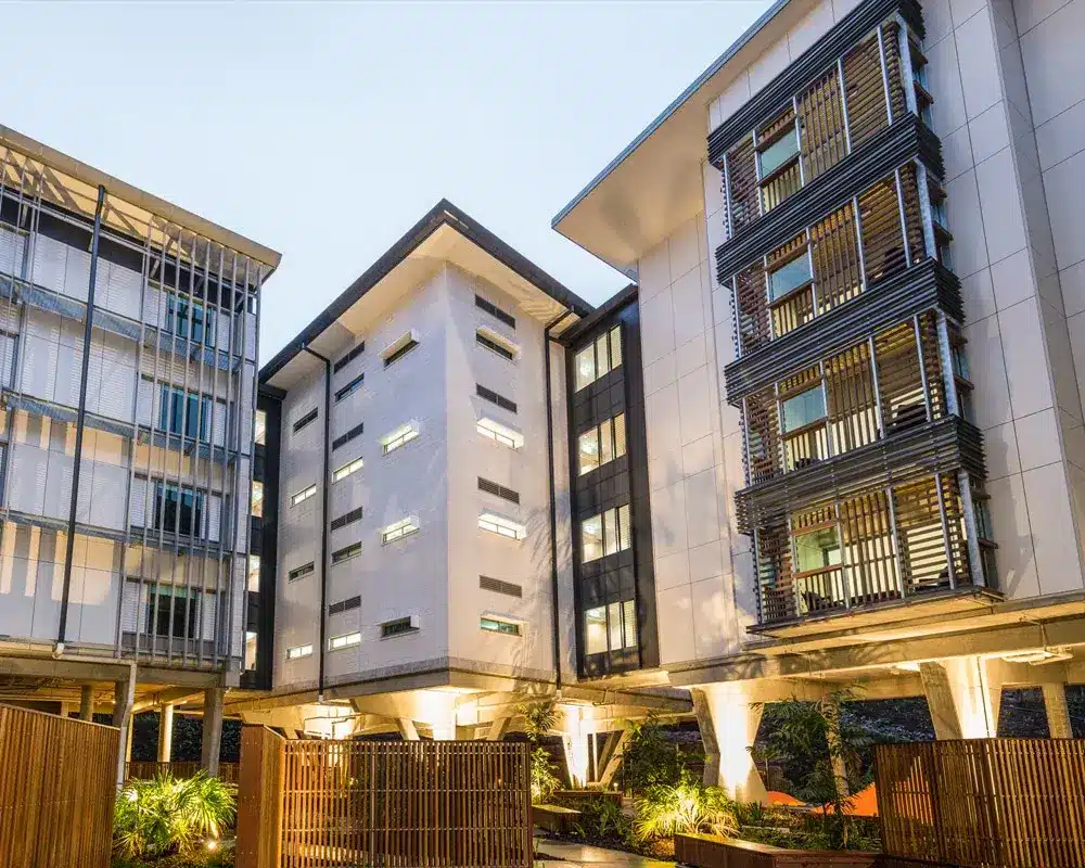 Expertly designed for low rise, high rise and commercial building facades, fascia’s and soffits the ExoTec® Facade Panel and System is a deemed-to-satisfy, non-combustible cladding system. Aesthetically, ExoTec is a smooth sanded compressed fibre cement (CFC) façade panel that works with a top-hat system to create geometric designs with 10mm express joints. The 9mm thick panels are fully sealed on all sides, to reduce limit panel expansion, as well as being high impact resistant and durable. ExoTec can be fixed with concealed fasteners or purposefully exposed ones. For a custom look, it can be painted on-site with a wide range of acrylic textures or factory finished off-site in polyurethane or metallic colours.